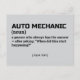 Auto Mechanic Definition - Office Humor Postcard Cette carte postale de la mécanique automobile donne vie à l'humour au travail. Parfait pour les mécaniciens qui aiment leur travail mais qui apprécient aussi un bon rire. Idéal pour donner à des collègues, des propriétaires d'atelier ou des employés de l'industrie de la réparation automobile. Fonctionne bien comme un cadeau d'humour de collection ou quotidien. Parfait pour les cartes postales de mécanicien automobile et l'humour de travail amusant.