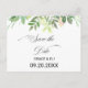 Cette destination estivale verdoyante à l'exception de la carte datant est parfaite pour un mariage simple. Des feuilles verts à la main, des feuillages ornent des cadres géométriques idylliques, un style et une classe époustouflants pour embellir vos cartes d'occasion.