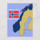 Postale Drapeau et carte de la Norvège