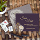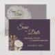 Cette carte de mariage ancienne fleur Daisy violette save the date combine un design moderne boho, style vintage avec un design traditionnel de type royal. Le prune foncé et le lavande poussiéreux, contrastant avec les fleurs florales minimales, les fleurs sauvages dorées ainsi que la calligraphie jaune, créent une touche simple mais élégante à votre célébration de mariage de printemps ou d'été.
