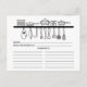 Cartes à recettes Cute Fête des mariées avec croquis noir et blanc des assiettes, pots, bols et ustensiles de cuisine. L'avant de notre carte de recettes offre de la place pour un titre de recette, de la cuisine de et de l'espace ingrédients. Retournez notre carte de recette pour voir les directions, le temps de préparation et le temps total. Visitez notre boutique pour les invitations assorties à la douche nuptiale Disponible dans notre boutique dans un large assortiment de couleurs wedding showers populaires. Insérez parfait nuptiale invitation pour un stock la douche nuptiale cuisine.