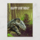 La carte postale d'anniversaire amusante comporte la tête de dinosaure avec l'arrière - plan de forêt primitive et le texte personnalisable "Joyeux anniversaire". Dans le texte personnalisable : "d'un dinosaure à un autre". Parfait pour célébrer les anniversaires jalons