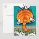 Carte postale à thème chat mignonne avec un tableau de l'artiste britannique Lisa Marie Robinson. "Bit of a Squeeze" — Drôle design représentant un gros chat tabby au gingembre serrant à travers un rabat de chat. Copyright © Lisa Marie Robinson. Tous Droits Réservés.