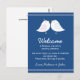 Cette carte de sac de bienvenue mariage comporte deux inséparables mignons faisant face l'un à l'autre, un arrière - plan bleu marine et un texte personnalisable. Vous pouvez modifier la couleur de l'arrière - plan en cliquant sur le bouton customiser, puis en modifiant. Cette carte peut être attachée à des cadeaux de bienvenue/sac pour les mariages extérieurs à la ville.