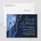 Carte postale moderne changement de date en marbre bleu or.