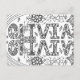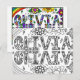 Carte de coloriage en noir et blanc avec un échantillon d'image sur le dos. Le nom de la fille Olivia, dessin noir et blanc de fleurs blanches et un arc-en-ciel pour vous de couleur. Elles sont mignonnes à coller dans les cartes d'anniversaire des enfants. Surprenez-les avec une page de couleur dans leur carte d'anniversaire !