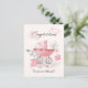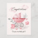 Bienvenue une nouvelle arrivée douce avec cette charmante carte de félicitations pour petite fille, avec un design d'aquarelle douce d'une vintage poussette rose, de la suce, des bottes et des accents floraux. Les délicates teintes rose et rousse en font un endroit parfait pour célébrer la joie d'une petite fille qui naît. Idéal pour la famille, les amis ou les collègues pour envoyer des voeux chaleureux en cette occasion précieuse. Complètement personnalisable ajoutez votre propre message ou nom pour une touche personnelle !