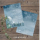 Thème Les parties bleu foncé à budget facile enregistrer la carte de date (4,25 po x 5,6 po) design avec des aquarelles et des montagnes sur un arrière - plan bleu foncé aquarelle. La typographie associe le lettrage traditionnel au texte à lettres manuscrites moderne. #SaveTheDate #DustyBlueWedding #BudgetWedding