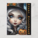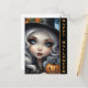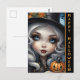 Envoyez des salutations éffrayantes avec notre poupée sorcière Déplaisante avec une carte postale Halloween Citrouille sculpté. Cette carte postale illustre de près une poupée de sorcières aux yeux bleus captivants, bercant un citrouille taillé. Les mots "Happy Halloween" ornent le côté, donnant le ton parfait pour une célébration envoûtante. Partagez l'esprit d'Halloween avec cette carte postale charmant et un peu étrange.