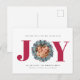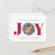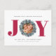 Carte de Noël Eucalyptus Photo Typographie moderne - JOY est présenté dans la typographie moderne en gras en rouge avec une couronne d'eucalyptus et de baies vitrées autour de votre photo préférée. Le message de bienvenue modifiable dit "Je vous souhaite un jour férié plein de JOIE." Tout notre amour, votre nom de famille et les noms des membres de votre famille. Quelle belle façon d'envoyer vos salutations de vacances cette saison. La carte fait partie d'une collection. Affiché en rouge, mais vous pouvez facilement changer la couleur dans l'outil de conception. Conçu par Beverly Bainbridge Magnolia & Thistle