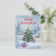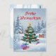 Weinachtskarte mit einer festlich geschmückten Tanne im verschneiten Wald. Um den Baum versammeln sich niedliche Tiere, die von Geschenken und Lichterglanz umgeben sind. Das liebevolle, märchenhafte Design eignet sich perfekt für Kinder und Erwachsene gleichermaßen.