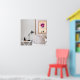 Das moderne Schlafzimmer bietet einen weißen Nachttisch mit schwarzer Lampe und dekorativen Gegenständen neben einem Bett mit gemusterten Kissen. Ein gerahmtes Bild mit lebendigen Lippen und zwei Sitzgruppen verleiht dem minimalistischen Dekor eine ganz besondere Note. Ein lustiges Bild in einem Bild. Dieses Design ist in vielen anderen Größen erhältlich und kann auch auf 1000's anderer Produkte übertragen werden und oft mit dem von Ihnen gewünschten Text personalisiert werden. Auch zum sofortigen Download verfügbar.
