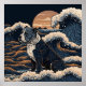 POSTER 日本の伝統的なヴィンテージデザインを使用したアート作品 躍動感のある波と犬