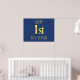 1er anniversaire design sur un arrière - plan en faux cuir bleu.