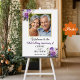 Ce panneau d'accueil de l'anniversaire Mariage a une élégante calligraphie script, un cadre doré avec 1 photo spéciale et des roses violets. Vous pouvez personnaliser ce panneau avec les détails de votre anniversaire de Mariage.