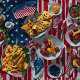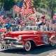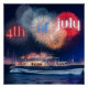 Concevez une image montrant une croisière feu d'artifice 4 juillet, avec un bateau plein de gens qui profitent du spectacle spectaculaire de l'eau.