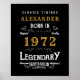 Poster 50th Birthday 1972 Ajouter le nom Legendary Black