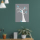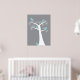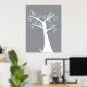 Cinq adorables oiseaux bleus pendent dans un arbre blanc contre un arrière - plan gris sur ce mignon poster ! Cette impression fait un grand ajout à n'importe quelle chambre!