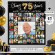 75th Birthday 45 Photo Collage encourage à 75 ans Poster Imprimer. Créez un poster photo de 75e anniversaire en utilisant ce modèle de collage photo facile à télécharger avec 45 photos de lui ou elle au fil des ans pour une décoration de fête d'anniversaire amusante et souvenir commémoratif. Le design comporte le titre CHEERS TO 75 YEARS avec des numéros de ballon en feuille d'or et des confettis et votre texte personnalisé (l'exemple dit HAPPY BANTHDAY NAME) dans votre choix de couleur arrière - plan (en noir). OPTIONS : L'échantillon est présenté dans une taille de 26X30" sur papier à valeur (Matte); d'autres tailles d'impression standard et personnalisées, qualité et encadrement du papier, fichier de téléchargement numérique instantané pour impression locale ou transfert de la conception à une planche en mousse, bannière, toile ou autres options de produit sont disponibles sur la page de commande. CONSEIL DE REdimensionnement : Choisissez Taille personnalisée pour les bordures paires en modifiant la hauteur et la largeur proportionnellement APRÈS avoir cliqué sur l'icône DÉVERROUILLER (ressemble à un lien de chaîne). ASSISTANCE : Pour obtenir de l'aide sur la modification ou la personnalisation de la conception, le changement de couleur, le redimensionnement ou le transfert de la conception, contactez le concepteur AVANT DE COMMANDER via l'onglet MESSAGE Conversation Zazzle ou envoyez un courriel à makeitaboutyoustore@gmail.com.