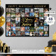 75th Birthday 48 Photos 75 Years in the Making Poster Print Sign. Célébrez un 75e anniversaire pour lui ou elle avec des souvenirs photo à travers les années avec cet affichage photo imprimé sur une affiche en utilisant ce modèle de collage photo facile à télécharger avec 48 images carrés avec un script de calligraphie rétro titre de typographie 75 ANS DANS LA FABRICATION et votre texte personnalisé dans votre choix de texte et de couleurs arrière - plans à coordonner avec vos couleurs de thème de fête (montré en or sur le noir) titre graphique reste or). L'exemple montre HAPPY BANTHDAY NAME. OPTIONS : L'échantillon est présenté dans une taille de 36x27" sur papier à valeur (Matte); d'autres tailles d'impression standard et personnalisées, qualité et encadrement du papier, fichier de téléchargement numérique instantané pour l'impression locale ou le transfert de la conception à une planche en mousse, bannière, toile ou d'autres options de produit sont disponibles sur la page de commande. CONSEIL DE REdimensionnement : Choisissez Taille personnalisée pour les bordures paires en modifiant la hauteur et la largeur proportionnellement APRÈS avoir cliqué sur l'icône DÉVERROUILLER (ressemble à un lien de chaîne). ASSISTANCE : Pour obtenir de l'aide sur la modification ou la personnalisation de la conception, le changement de couleur, le redimensionnement ou le transfert de la conception, contactez le concepteur AVANT DE COMMANDER via l'onglet MESSAGE Conversation Zazzle ou envoyez un courriel à makeitaboutyoustore@gmail.com.