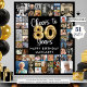 80th Birthday 51 Photo Collage encourage à 80 ans Photo Display Poster Imprimer. Créez un poster d'affichage de mémoire photo pour célébrer un 80e anniversaire en utilisant ce modèle de collage photo facile à télécharger avec 51 images carrés et rectangle dans une variété de tailles avec le titre CHEERS TO 80 YEARS avec des numéros de ballon en or faux métallique et votre texte dans votre choix de texte et de couleurs arrière - plans (montré en blanc sur noir). OPTIONS : L'échantillon est présenté dans une taille de 27x32.5" sur papier à valeur (Matte); d'autres tailles d'impression standard et personnalisées, qualité et encadrement du papier, fichier de téléchargement numérique instantané pour l'impression locale ou le transfert de la conception à une planche en mousse, bannière, toile ou d'autres options de produit sont disponibles sur la page de commande. CONSEIL DE REdimensionnement : Choisissez Taille personnalisée pour les bordures paires en modifiant la hauteur et la largeur proportionnellement APRÈS avoir cliqué sur l'icône DÉVERROUILLER (ressemble à un lien de chaîne). ASSISTANCE : Pour obtenir de l'aide sur la modification ou la personnalisation de la conception, le changement de couleur, le redimensionnement ou le transfert de la conception, contactez le concepteur AVANT DE COMMANDER via l'onglet MESSAGE Conversation Zazzle ou envoyez un courriel à makeitaboutyoustore@gmail.com.