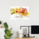 Belle et abstraite éclaboussure de couleur et tourbillonne avec d'élégantes orchidées dans les couleurs jaune orangé et centre rose. Combinaison de couleurs artistiques en jaune, vert, orange et rose doux et un script de calligraphie merci. Personnalisez en changeant le texte ou cliquez sur personnaliser pour ajouter votre propre touche.