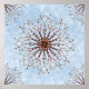 Un modèle de mandala créé à partir de photos de membres d'arbres d'hiver nus contre un ciel bleu avec des nuages blancs et lugubres. Au centre, la promesse du soleil printanier à venir.