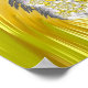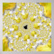 Ce produit présente un graphique numérique fractal abstrait en or et blanc avec Mandelbrot noir au milieu.