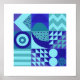 Poster Abstrait moderne blues greens formes géométriques