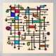 Affiche d'art moderne Abstrait du milieu du siècle large 40"x40" en plusieurs couleurs, carrés, lignes et cercles. Poster parfait pour votre décoration d'intérieur moderne du milieu du siècle.