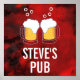 Une affiche pour votre pub avec un motif abstrait moderne. Les couleurs rouge et noir tourbillonnent, se mélangent et se mélangent. Créatif, artistique et unique, avec un flair sombre et mystérieux. Une paire de lunettes de bière mousseuses s'accrochent pour célébrer.