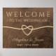 Affiche de bienvenue élégante, simple, adorable, en bois rustique Mariage - signe avec cravate en feuille d'or unique le coeur de la corde de noeud.