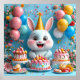Un mignon lapin orné d'une couronne fleurie profite d'une fête d'anniversaire animée avec des gâteaux colorés, des ballons et des décorations joyeuses, évoquant la joie et la célébration dans une ambiance festive.