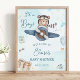 Poster Adventure Cute Bear Blue Plane Baby shower garçon