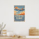 A tribute to the golden age of air travel, this mid-century–inspired poster captures a classic propeller airplane soaring above stylized clouds in a timeless travel-poster style. Muted blues and warm oranges evoke sunlit skies and long-haul journeys, while clean art-deco typography anchors the design with confident optimism. Finished with a softly weathered, sun-faded texture, Adventure Takes Flight celebrates exploration, movement, and the romance of vintage aviation—perfect for travelers, pilots at heart, and lovers of retro design.