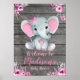 Très mignon Baby Girl Elephant sur un arrière - plan en bois avec des fleurs roses. Customisez votre texte et obtenez un grand poster signe d'accueil à votre fête! D'autres fichiers correspondants disponibles ici - https://www.zazzle.com/collections/ao144pg_rustic_pink_gray_elephant-119830776175496548?rf=238722231659402553 Des fichiers numériques sont également disponibles pour do-it-yourself impression sur demande - veuillez nous contacter.