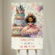 Nom personnalisé et bannière d'âge pour fille d'anniversaire mignonne. Créée dans le thème magique du conte de fées abstrait, cette collection sera absolument appréciée par les petits. Invitation vos proches avec bunner customisé avec la princesse afro-américaine mignonne fille avec couronne, célébrant son 5e anniversaire avec gâteau château, éclaboussure de confetti dans de belles couleurs pastel.
