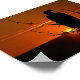 Un aigle magnifique se dresse au milieu des branches silhouettées contre le soleil couchant.