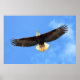 Photo d'un aigle volant contre un ciel bleu vif avec quelques petits nuages, ses ailes étirées. Voici une photo d'un aigle à tête blanche mature en vol, prise en Colombie-Britannique, Canada, qui a une forte concentration de ce majestueux raptor. Un aigle volant est un spectacle extraordinaire à voir !