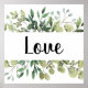 L'aménagement comprend le mot Amour niché dans un bouquet de feuilles eucalyptus. Une partie de l'ensemble Foi/Espoir/Amour - 1 Corinthiens 13:13. Ça fait un grand cadeau !