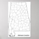 Cette carte d'état vierge de l'Alabama au grand format présente les contours de tous les comtés de l'état et est parfaite pour toute situation où vous avez besoin d'une carte de comté pour l'Alabama. Vous pouvez entrer n'importe quoi dans le champ étiquette ou le vider si vous ne voulez pas qu'un étiquette imprime. Il s'agit également d'une excellente aide visuelle pour les écoliers qui souhaitent en apprendre davantage sur les États et les comtés des États-Unis.