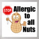 ARRÊTE ! Mon enfant est allergique à tous les noix. Une grande alerte d'allergie à l'arachide pour votre enfant au camp ou à l'école pour servir de rappel à la cafétéria afin de les éloigner des cacahuètes et autres noix d'arbre. Sensibilisation aux allergies alimentaires. Photo de Graphics Factory.