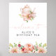 Cette pancarte de bienvenue d'anniversaire présente des fleurs aquarelles printanières et un ensemble de thé mignon. Ce thé d'anniversaire de bienvenue est parfait pour votre petit-déjeuner ou brunch de mariage.