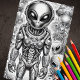 Poster de coloriage 3D Alien amusant pour petits et grands.