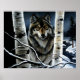 Loup solitaire en hiver, à la rencontre de deux arbres