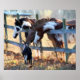 Peinture numérique d'une photo de V.L. Himmelberger de chevaux et d'une rencontre de chèvres par une clôture.