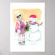 affiche d'amis d'hiver pour bébé filles en décoration de crèche. Illustré dessiné à la main et aquarellé de fille mignonne et son ami