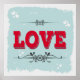 Illustration d'amour vintage avec décoration florale et de coeur sur arrière - plan bleu dans cadre grunge