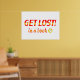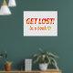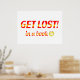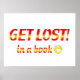 Amusez-vous et faites-vous connaître les livres et la lecture avec ce design lumineux avec le visage souriant et les mots Get Lost! dans un livre.
