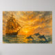 Old Ship Sunset — Un majestueux voilier navigue à travers les eaux dorées tandis que les dauphins sautent en harmonie sous un ciel ensoleillé et radieux. Cette oeuvre capture la beauté intemporelle de la mer, mêlant aventure, nostalgie et merveille naturelle — parfaite pour les amoureux de la mer, les rêveurs d'océan et les collectionneurs d'art classique.